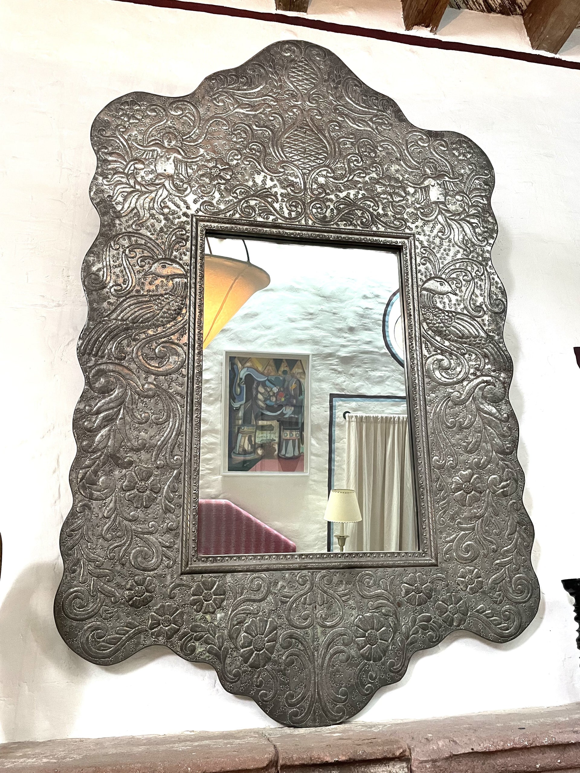 Mexican hammered tin mirror (vintage Mexican folk art mirror signed)